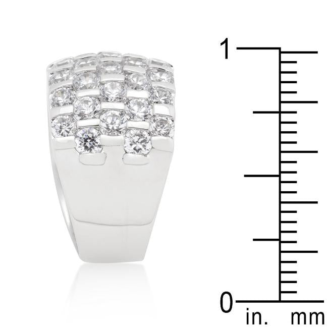 Fashioned in an elegantly stacked design this princess cut ring is reminiscent of old school glamour. Our genuine rhodium finish is achieved using an electroplating process that coats the item with heavy layers of rhodium a close cousin to platinum which gives our jewelry a platinum luster.