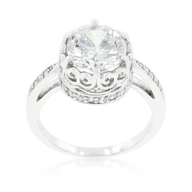 Feminine and elegant. Simple and sophisticated. Fashioned in an elegant cubic zirconia this ring is would be royally adored by any woman. Our genuine rhodium finish is achieved using an electroplating process that coats the item with heavy layers of rhodium a close cousin to platinum which gives our jewelry a platinum luster.