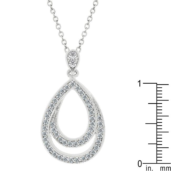 The name says it all. Evening Teardrop showcases its cubic zirconia in a channel setting. Two interflowing designs simulate a teardrop look. This style is contemporary yet timeless. Not to mention its cute. Also check out Evening Teardrops matching earring set Evening Drop. Genuine Rhodium Plating is achieved using an electroplating process that coats the item with heavy layers of rhodium a close cousin to platinum which gives our jewelry a platinum luster.