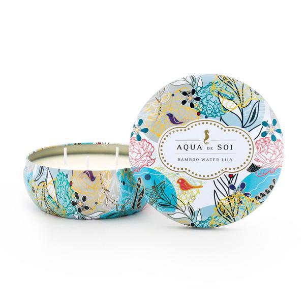 Fill your home with the luxurious blends of Aqua De Soi Candles. Each Aqua De Soi candle is hand poured using only the finest ingredients and fragrance oils available. Our candles are made of 100% premium soy oil and all were inspired by the passion for fragrance love of exotic travel and strive for clean living. The Bamboo Water Lily 21oz triple wick candle is a fusion of watery apple and crystal springs with a hint of Muddled spearmint. A touch of sheer jasmine and lotus petals with green bamboo.