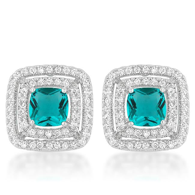 This earring set is complete with princess cut aqua and round cut clear cubic zirconia. Our genuine rhodium finish is achieved using an electroplating process that coats the item with heavy layers of rhodium a close cousin to platinum which gives our jewelry a platinum luster.