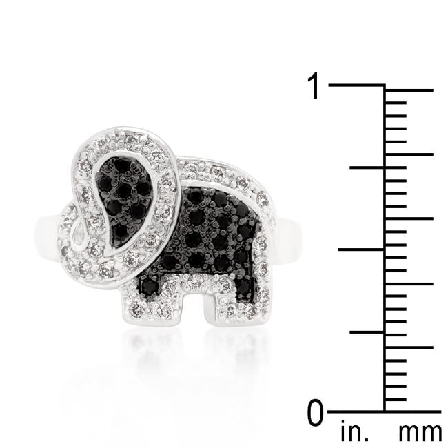 This statement animal ring features a black and white encrusted elephant. Our two-tone and tri-tone process use 18k gold that electroplated coating the item with heavy layers of 18k yellow gold giving it that 14k hamiliton gold polished look. The silver tone is achieved by applying a heavy coating of genuine rhodium to the item giving is a lustrous silver tone high polish.