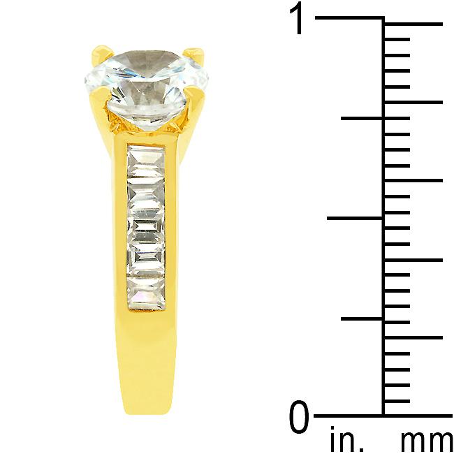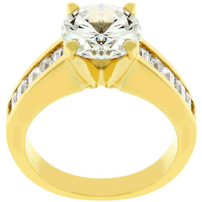 Classic Golden Engagement Ring is a truly classic style. Two cuts of cubic zirconia compliment its design well. This ring also comes in silver tone. 18k plated gold is achieved using an electroplating process that coats the item with heavy layers of 18k Yellow Gold and color-treated to display a perfect 14k Hamilton gold color.