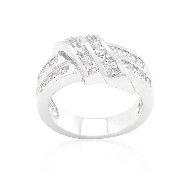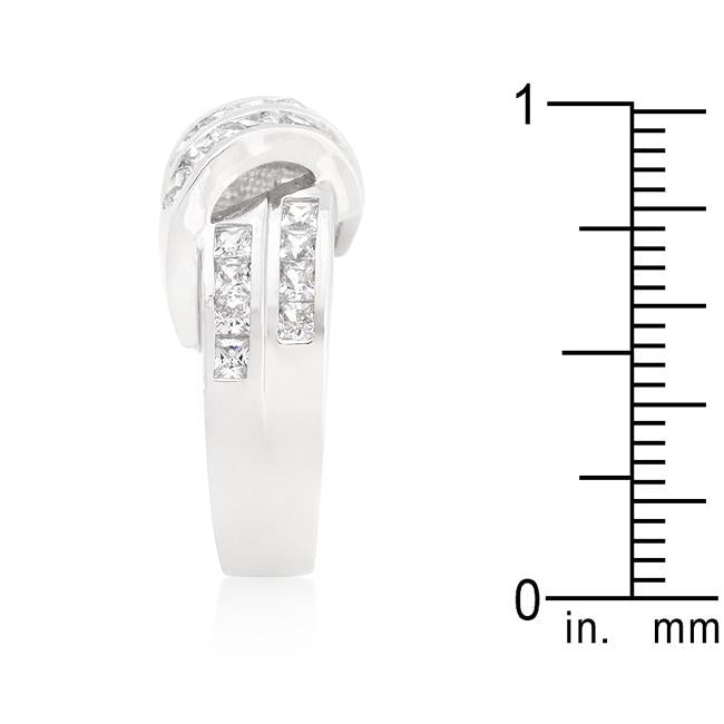 Fashioned with a double strand illusion this sparkling fashion ring is the perfect classic ensemble. Our genuine rhodium finish is achieved using an electroplating process that coats the item with heavy layers of rhodium a close cousin to platinum which gives our jewelry a platinum luster.