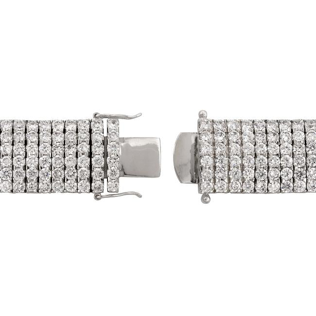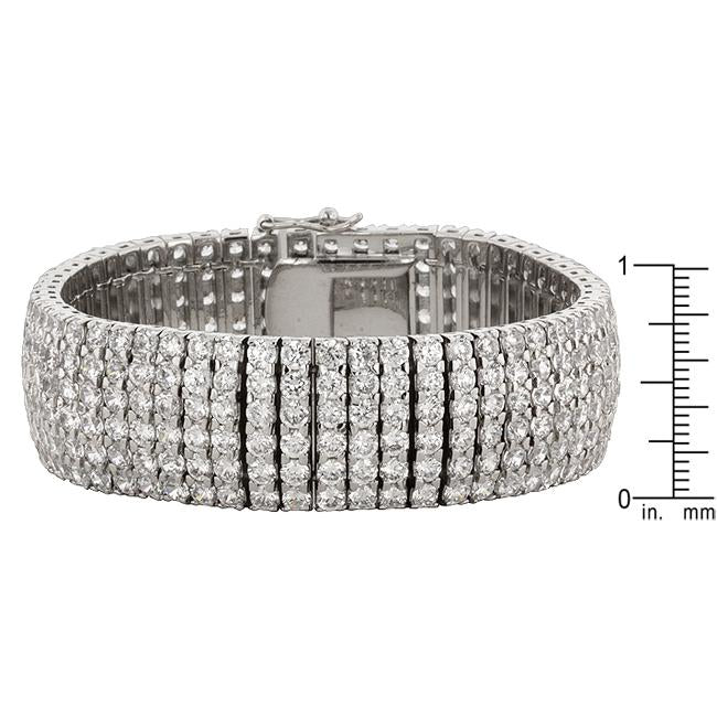 The Cubic Zirconia studded Formal Elegance Bracelet features 336 stones set in luminescent silver tone. Our genuine rhodium finish is achieved using an electroplating process that coats the item with heavy layers of rhodium a close cousin to platinum which gives our jewelry a platinum luster.