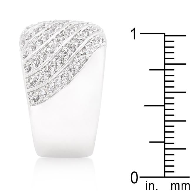 Fashioned with sparkling stones in a diagonal design this piece is artistically classic. Our genuine rhodium finish is achieved using an electroplating process that coats the item with heavy layers of rhodium a close cousin to platinum which gives our jewelry a platinum luster.