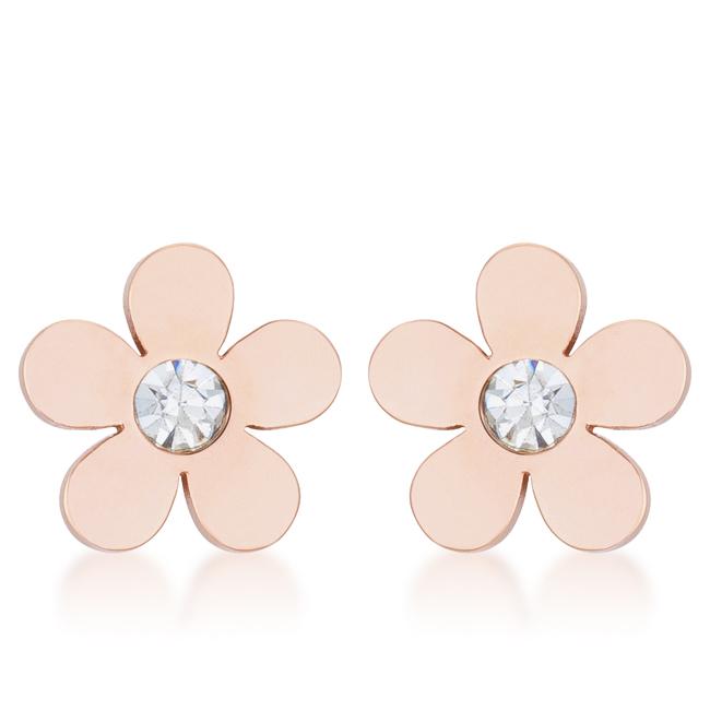 Daisy 0.3ct CZ Rose Gold Stainless Steel Flower Stud Earrings