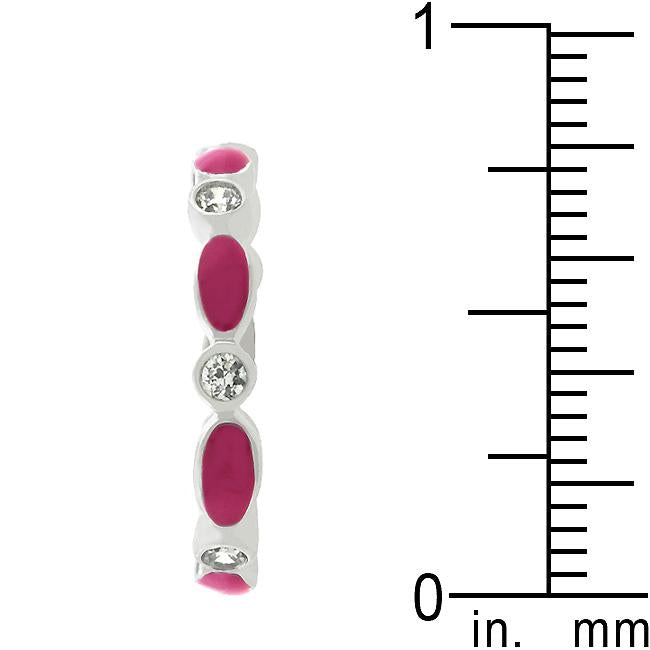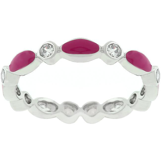 The Fuchsia Link Enamel Stacker is embellished with fuchsia enamel and bezel set cubic zirconia and trimmed with a stunning silver tone. Try mixing it up with our other stacker rings and stack em up. Genuine Rhodium Plating is achieved using an electroplating process that coats the item with heavy layers of rhodium a close cousin to platinum which gives our jewelry a platinum luster.