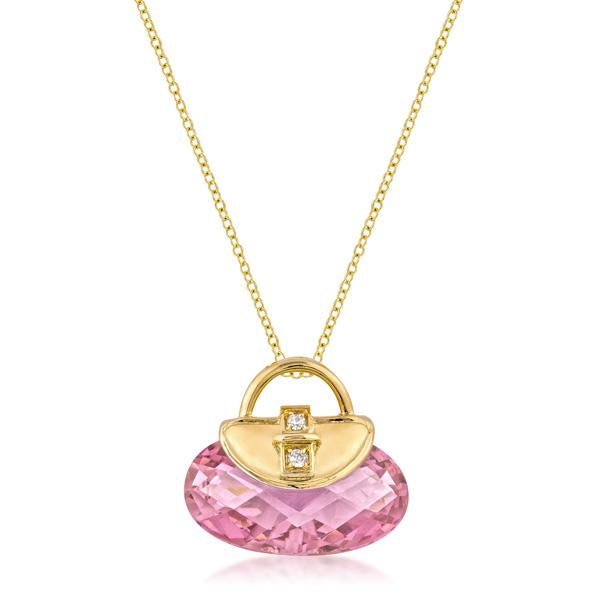 This beautiful handbag pendant features an array of shimmering cubic zirconia! 18k plated gold is achieved using an electroplating process that coats the item with heavy layers of 18k Yellow Gold and color-treated to display a perfect 14k Hamilton gold color.