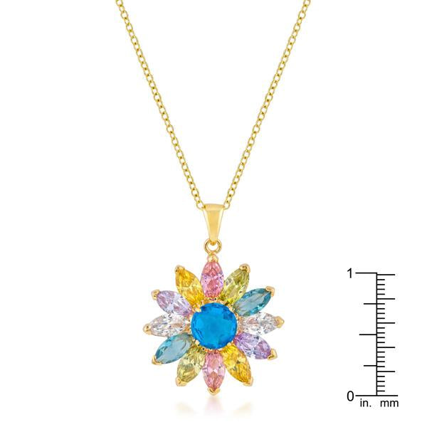 Wrap this lustrous floral pendant around your neck for added glitz! 18k plated gold is achieved using an electroplating process that coats the item with heavy layers of 18k Yellow Gold and color-treated to display a perfect 14k Hamilton gold color.