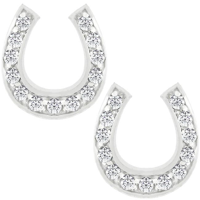 Make any look come to life with this sterling silver charming horseshoe earring set. Genuine Rhodium Plating is achieved using an electroplating process that coats the item with heavy layers of rhodium a close cousin to platinum which gives our jewelry a platinum luster.
