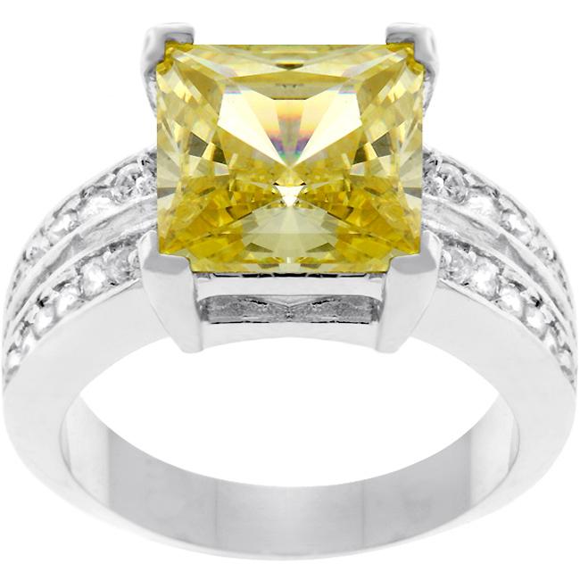 This yellow cubic zirconia ring is gorgeous. The stone pops with the AAA cubic zirconia princess cut canary colored stone. The pave shoulders are classic and elegant. Genuine Rhodium Plating is achieved using an electroplating process that coats the item with heavy layers of rhodium a close cousin to platinum which gives our jewelry a platinum luster.