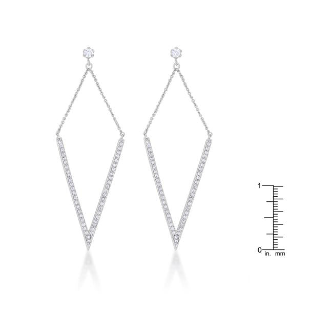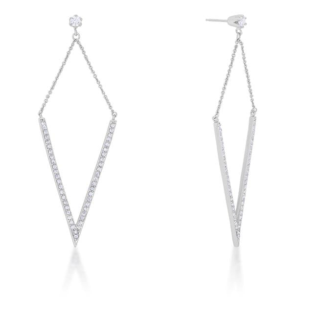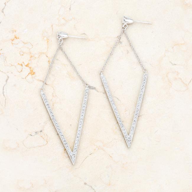 Clear stones delicately accent the V-shape drop of statement drop earrings for an easily trendy look. Our genuine rhodium finish is achieved using an electroplating process that coats the item with heavy layers of rhodium a close cousin to platinum. This gives our jewelry a platinum luster.