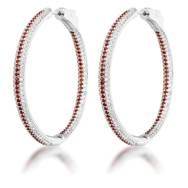 A contemporary classic, these hoops are perfect for a sophisticated sparkle. With their intricate micro pave setting, these hoop earrings add style and glamour to your fashion. These earrings are glittering with white and orange cubic zirconia and make a lovely accent to both casual or formal wear.