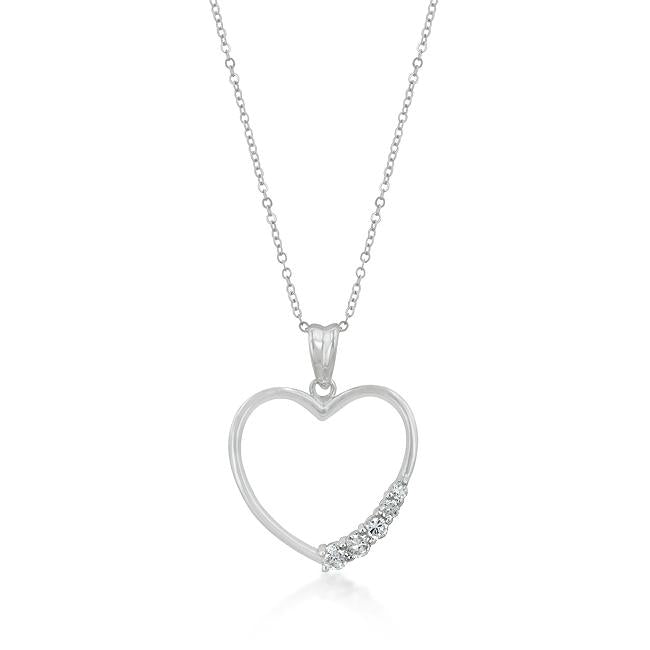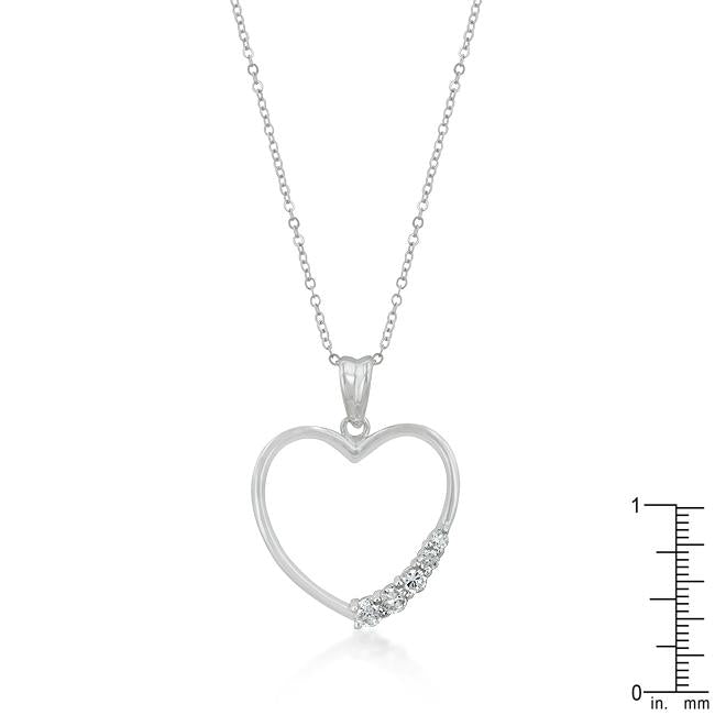 Five descending stones climb up one half of a classic heart pendant lending a bit of sparkle to a romantic gesture. Our genuine rhodium finish is achieved using an electroplating process that coats the item with heavy layers of rhodium a close cousin to platinum which gives our jewelry a platinum luster.
