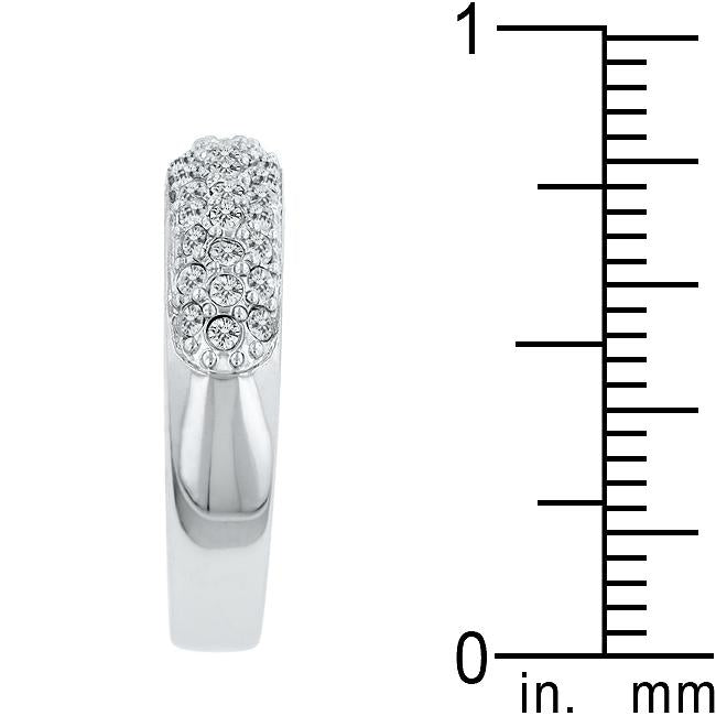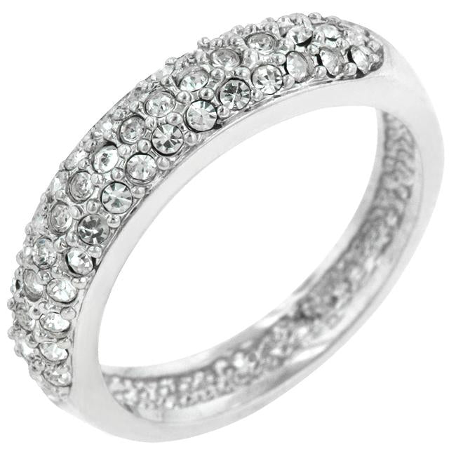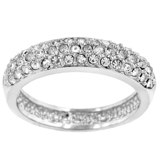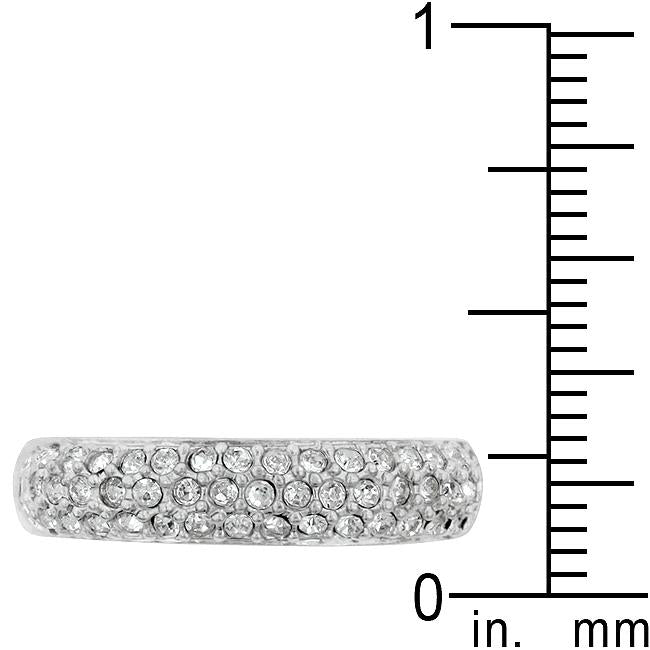Pave Crystal Silver Band features pave set small crystals on a silver tone band. Genuine Rhodium Plating is achieved using an electroplating process that coats the item with heavy layers of rhodium a close cousin to platinum which gives our jewelry a platinum luster.