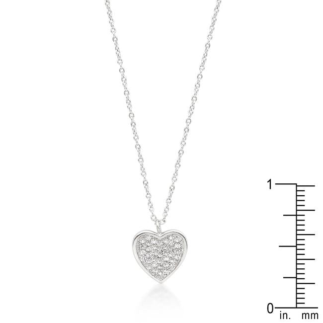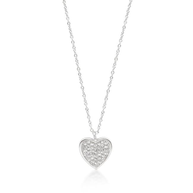 Seal sentiments with this simple heart shaped pendant featuring Pave cubic zirconias in a classic silhouette. Perfect for everyday. Our genuine rhodium finish is achieved using an electroplating process that coats the item with heavy layers of rhodium a close cousin to platinum which gives our jewelry a platinum luster.