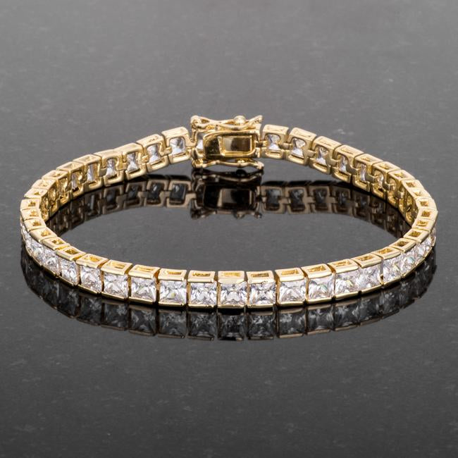 There is just no comparison to a sparkling bracelet that shimmers with CZ sparkles over a golden setting. This bracelet features princess cut cubic zirconia that adds a bit of flash to an elegant piece of jewelry. It might make your friends envy you but theyll get over it!