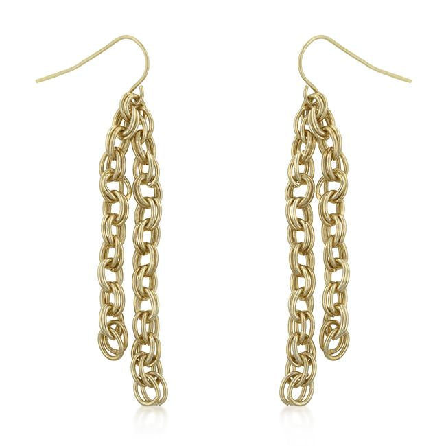 Rolo chains lightly dangle in this pair of contemporary chain earrings. Our gold tone finish is heavily coated to achieve its beautiful golden color.