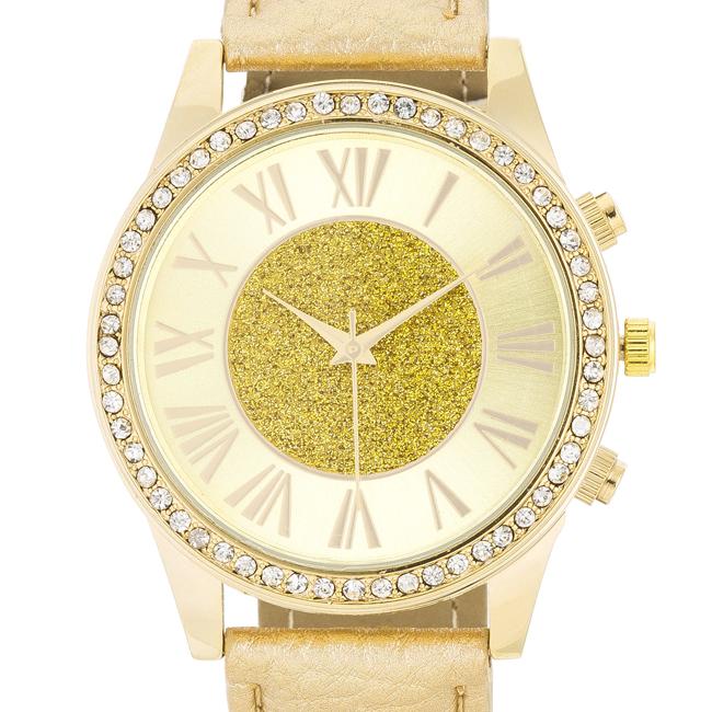 Clear stones and glitter details lightly accent the face of this feminine leather watch. Our watch selection is stylishly designed without sacrificing comfort. We offer different color and style variations. Browse our selection and youll definitely find your unique look.