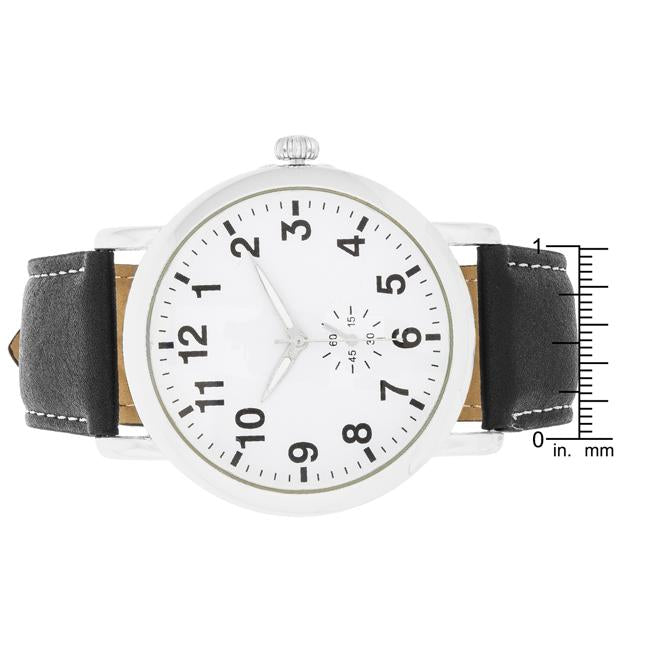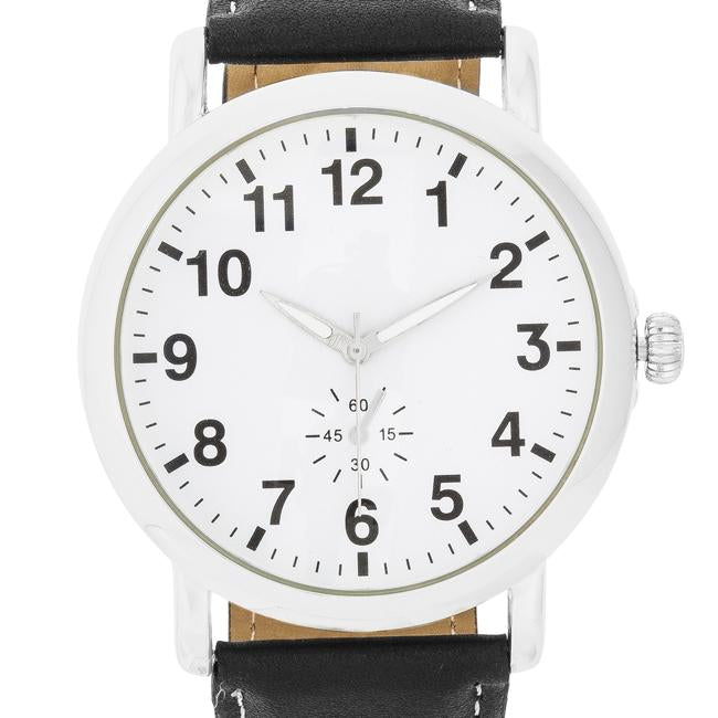 Silver Classic Watch With Black Leather Strap