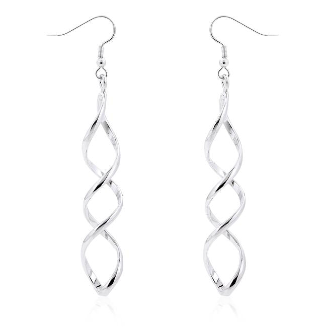 Silver metals twist into a drop design thats contemporary yet wearable. Our silver tone finish is heavily coated to achieve its beautiful silver color.