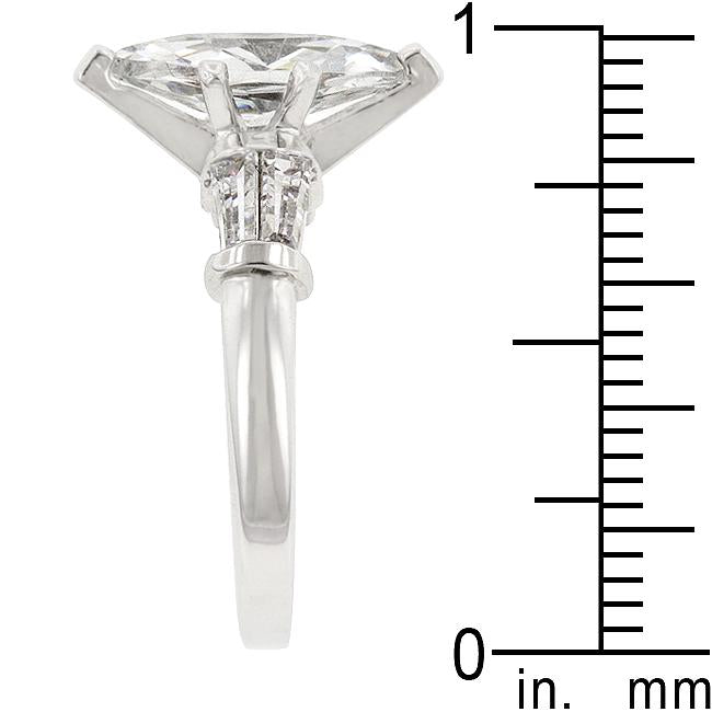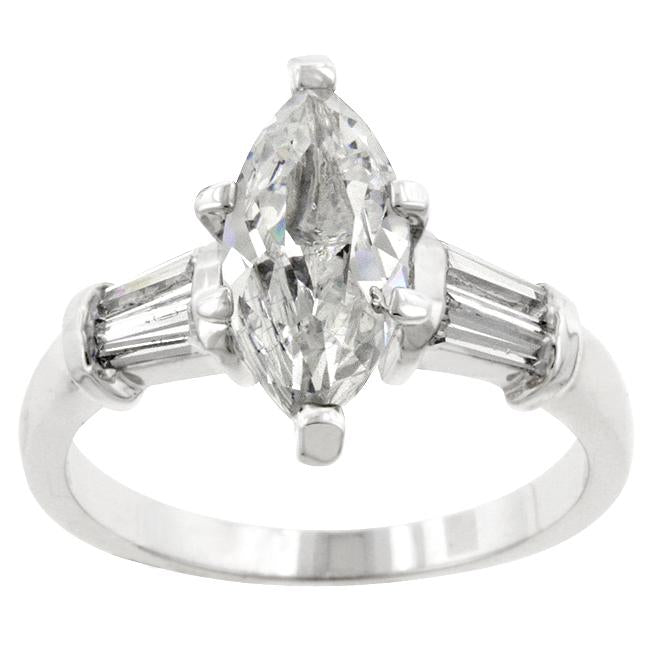 The rhodium plated Marquise Centerpiece Ring is an engagement classic with a gorgeous marquise cubic zircon. Genuine Rhodium Plating is achieved using an electroplating process that coats the item with heavy layers of rhodium a close cousin to platinum which gives our jewelry a platinum luster.