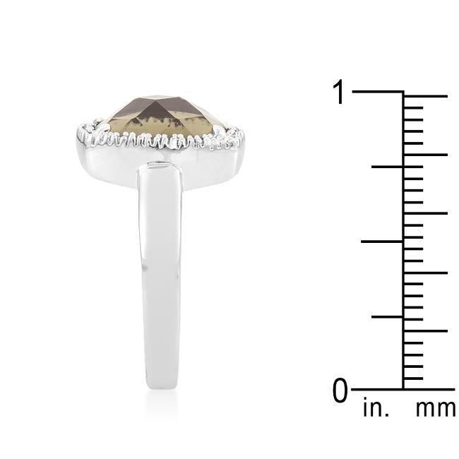 Update your look with our smokey topaz color cubic zirconia fashion ring. The ring is embellished with the perfect number of stones to set your finger off with sparkle! Our genuine rhodium finish is achieved using an electroplating process that coats the item with heavy layers of rhodium a close cousin to platinum which gives our jewelry a platinum luster.
