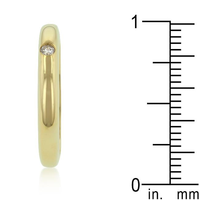 A 2 mm cubic zirconia adorns this golden wedding band. 18k plated gold is achieved using an electroplating process that coats the item with heavy layers of 18k Yellow Gold and color-treated to display a perfect 14k Hamilton gold color.